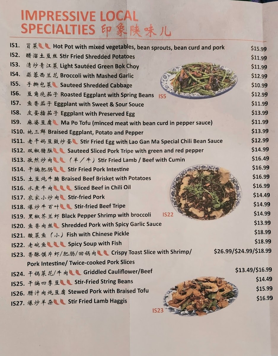 - Soups: Featuring a range of hearty options such as Lamb Offal Soup, Pao Mo Soup with Beef or Lamb, Hot & Sour Soup with Diced Pepper Steak, and several house special stews.