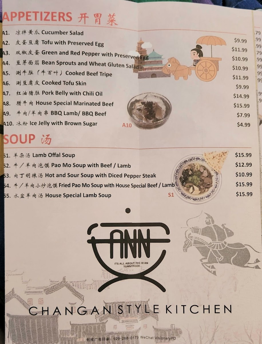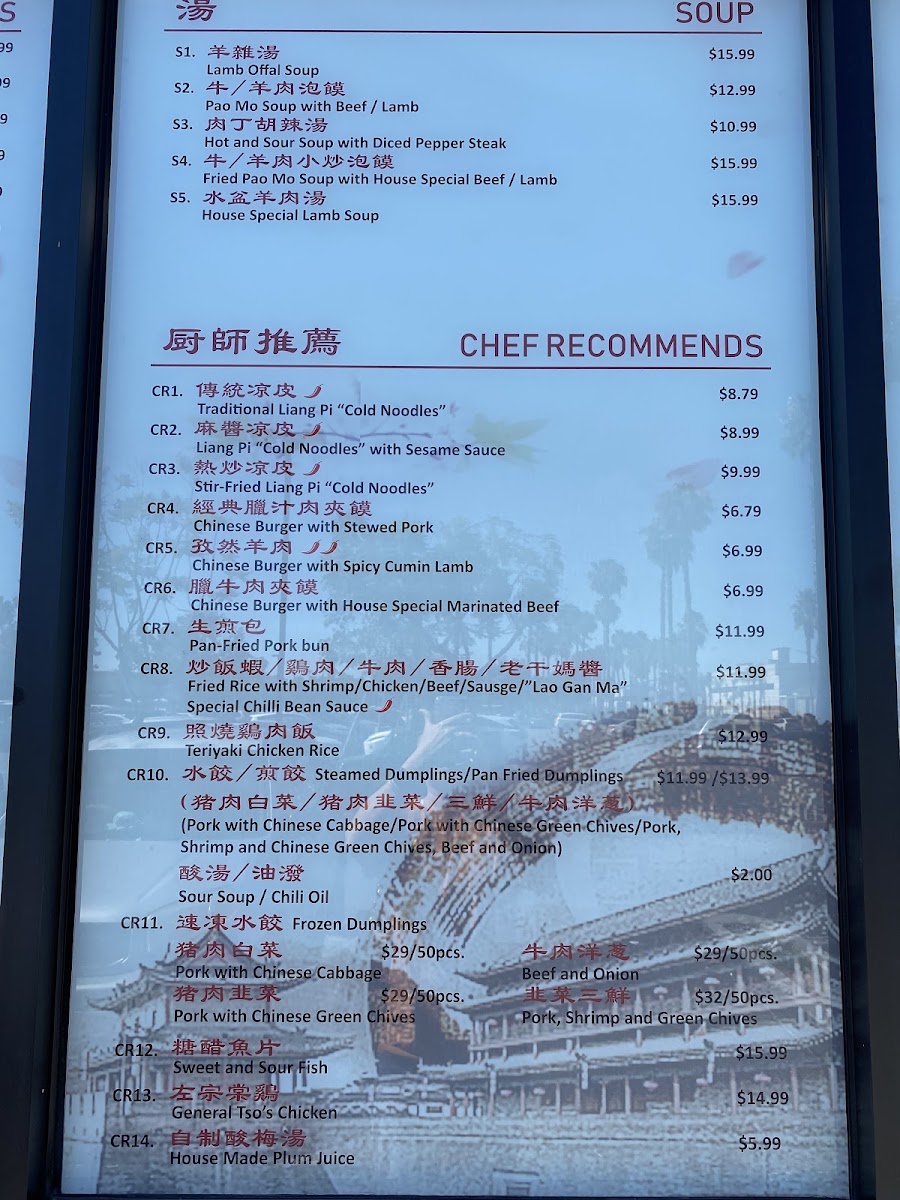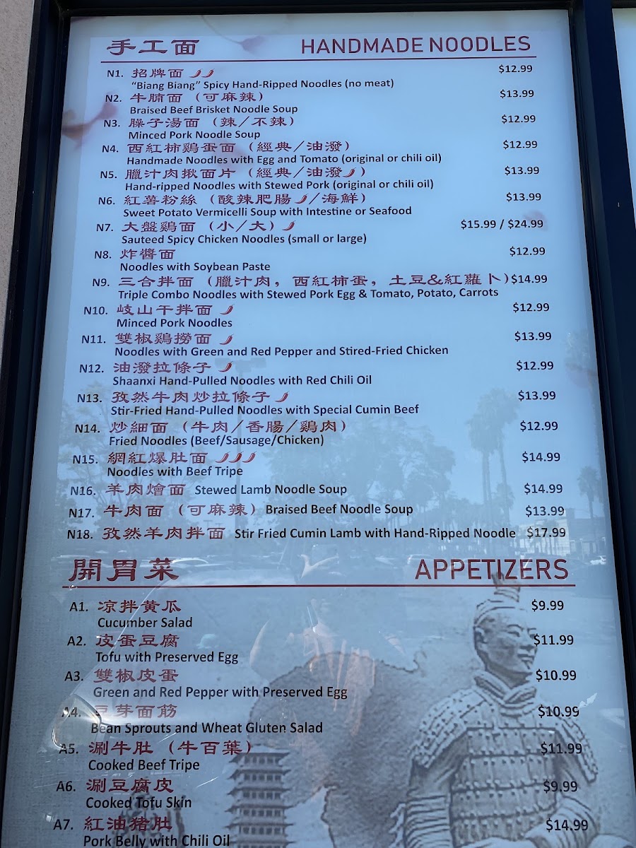 The menu at Changan Kitchen offers a variety of authentic Chinese dishes, focusing primarily on handmade noodles, soups, and traditional local specialties. It is organized into several key categories to help visitors navigate the selection.